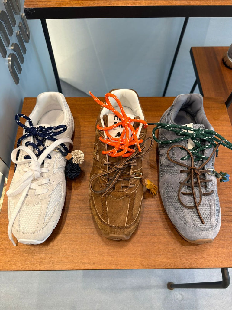 This model is the result of an exclusive collaboration between New Balance and Miu Miu, merging athletic heritage with avant-garde aesthetics. The 530 SL sneakers are reimagined through Miu Miu’s lens: featuring raw textures, unconventional lacing, and a deliberately unfinished look that transforms everyday footwear into a fashion statement.