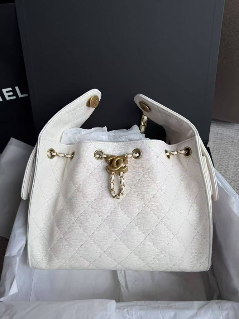 Chanel 25 hobo bag white small