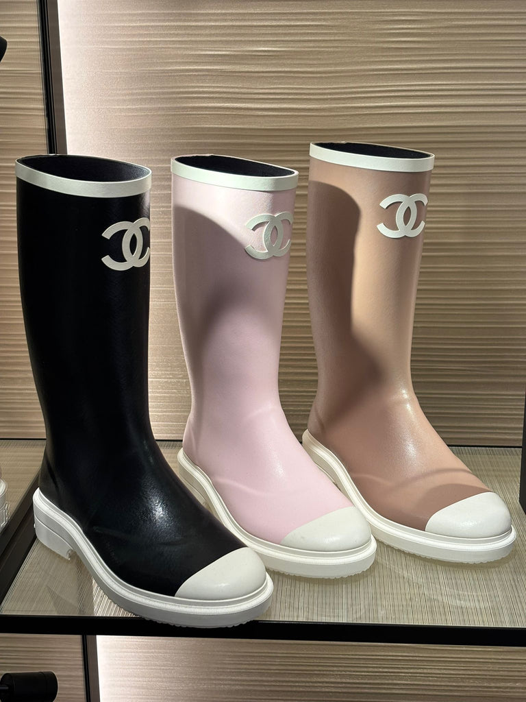 The Chanel 26C Caoutchouc Rain Boots in Pastel Pink offer a fresh, feminine take on the brand’s iconic waterproof footwear. Released as part of the Cruise 2026 (26C) collection, these boots combine functionality with refined aesthetics, turning rainy days into a fashion statement.