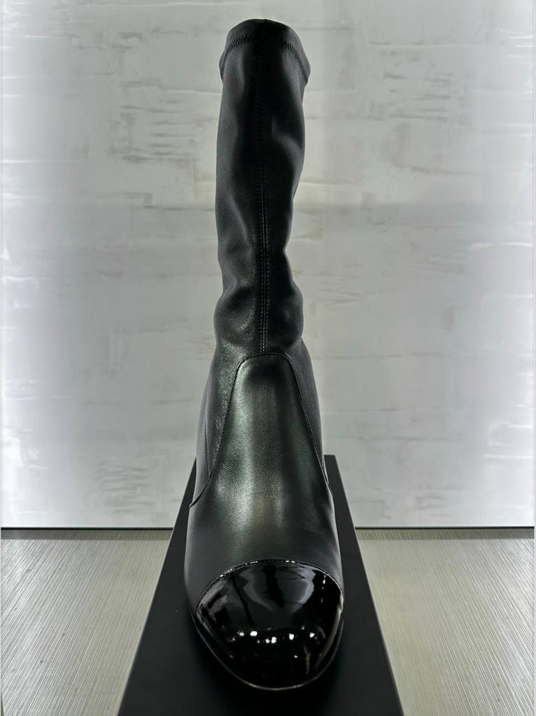 The Mary Janes from Chanel’s Fall-Winter 2025/26 collection reimagine a timeless shape with luxurious materials and a bold artistic statement. Crafted from soft stretch lambskin, they feature patent leather accents and a sculptural oversized pearl heel adorned with the iconic Chanel logo. This pair is not just footwear — it’s wearable art.