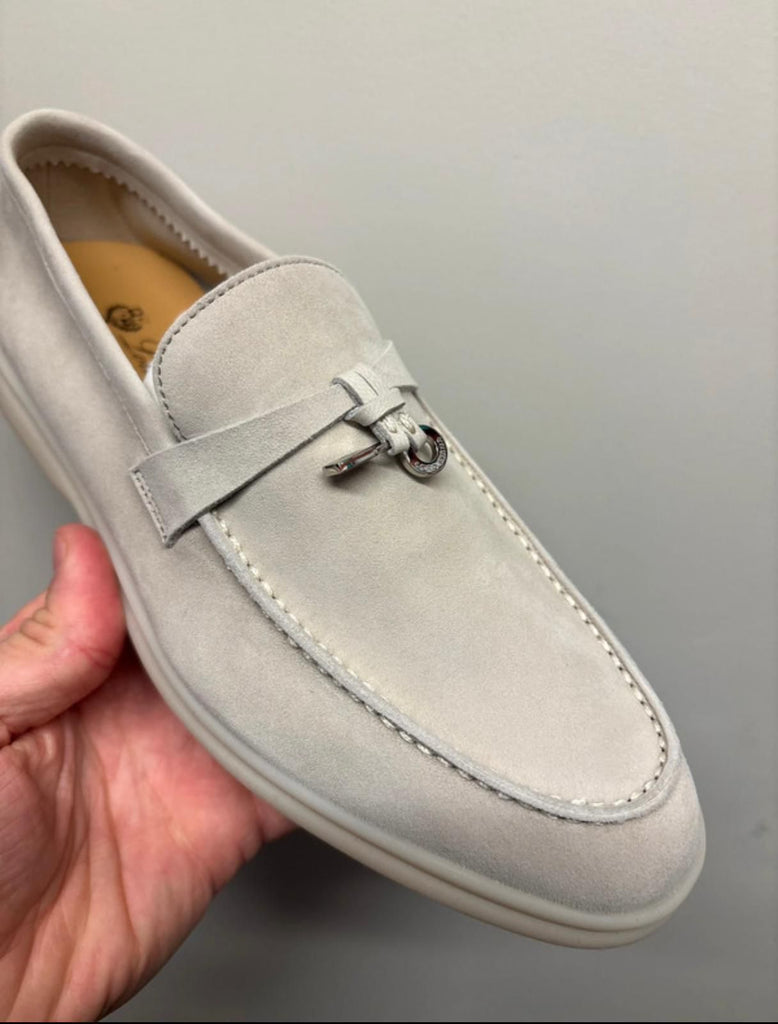 Loro Piana Summer Charms Walk — Powder Pearl Suede Loafers